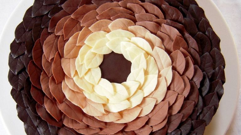 Müxtəlif rəngli şokoladdan istifadə edərək maraqlı bir kompozisiya əldə edə bilərsiniz. Yarpaqlardan bir çiçək əmələ gətirə bilərsiniz. Və ya tortun üzərinə düzərək payız əhval-ruhiyyəsi vermək olar.