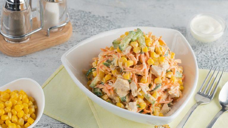 Qarğıdalı və yaşıl noxudlu doyurucu, yüngül salat bayram süfrəsi və ya sadə şam yeməyi üçün uyğundur. Bu ləziz salat həmçinin çox faydalıdır.