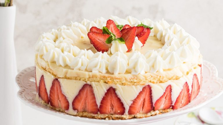 Zərif bir biskvit, dondurmaya bənzəyən bir krem, çiyələk və hamısı birlikdə – Fransız tort ustalarından möhtəşəm bir Frezye (Fraisier) tortu. Tortun kənarlarındaki çiyələklər bu torta …