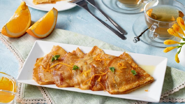 “Krep Syuzet” – məşhur fransız desertlərindən biridir. Ailənizi və qonaqlarınızı bu zərif, ağızda əriyən portağal sousunda ətirli blinçiklərlə təəccübləndirə bilərsiniz. Evdar.az məşhur desertin reseptini təqdim …