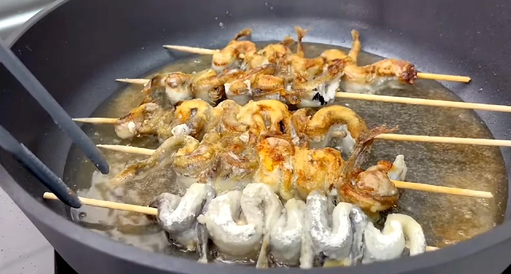 Soğanın qabığını soyub sürtgəcdən keçirin. Sürtgəcdən keçirilmiş soğanı təmiz bir tənziflə suyunu sıxıb dərin bir qaba tökün. Soğan suyuna limon suyunu da əlavə edin. Duz və qırmızı bibər tozu da əlavə edib qarışdırın. Hazırladığınız marinada balıqları əlavə edib yaxşıca bulayın. Balıqları marinadda 20 dəqiqə saxlayın. Daha sonra balıqları çöp şişlərə keçirin. Şişləri una bulayıb silkələyin. Balıq şişlərini qızdırılmış yağda qızardın. Hər iki tərəfi qızılı rəng olana qədər orta odda bişirin. İstəyə görə balıqları adi qaydada şişə keçirin və ya balığın baş hissəsindən quyruq hissəsinə qədər buraraq keçirə bilərsiniz.