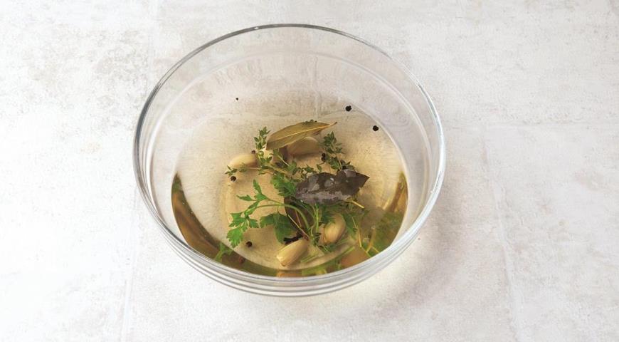 - 2 buket qarni (bouquet garni) -3 budaq kəklikotu, cəfəri və dəfnə yarpağı