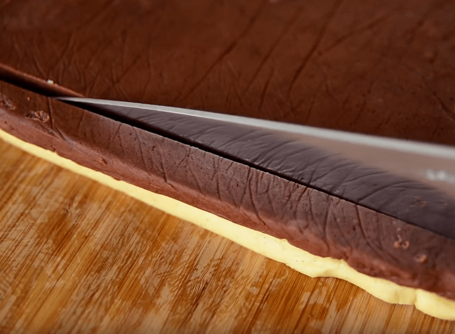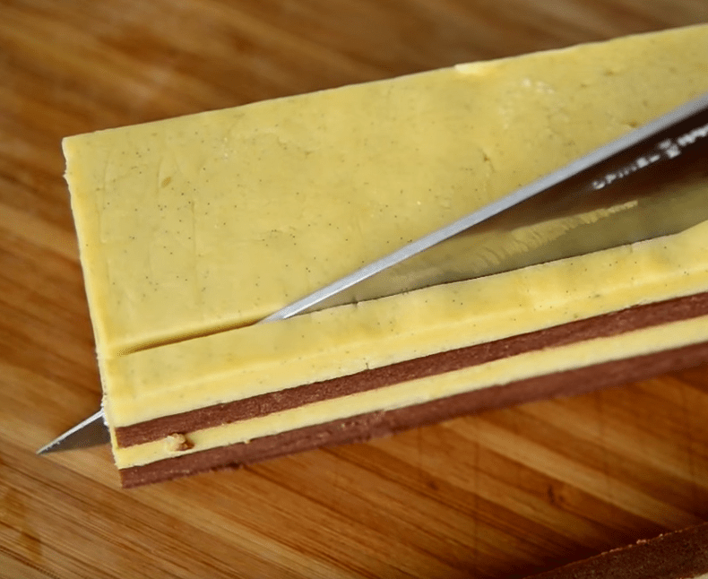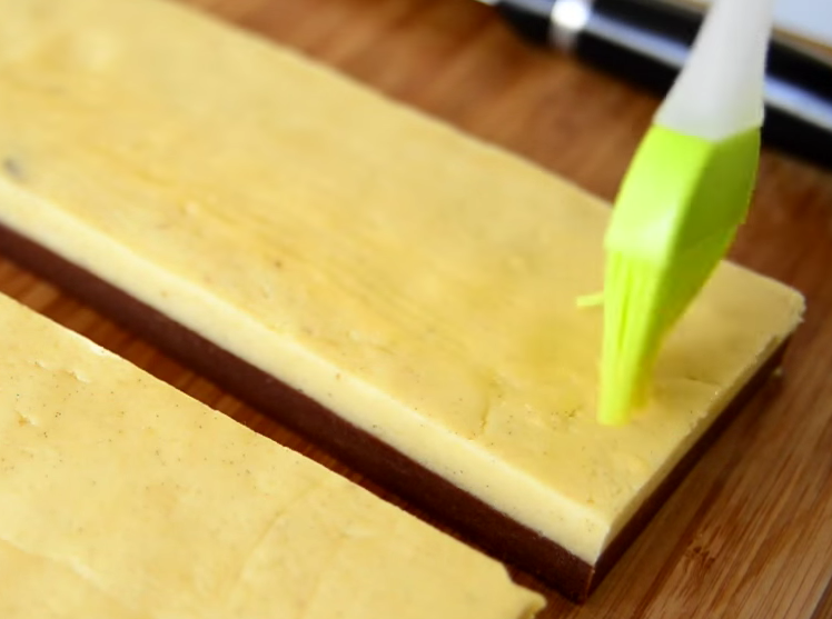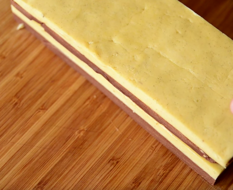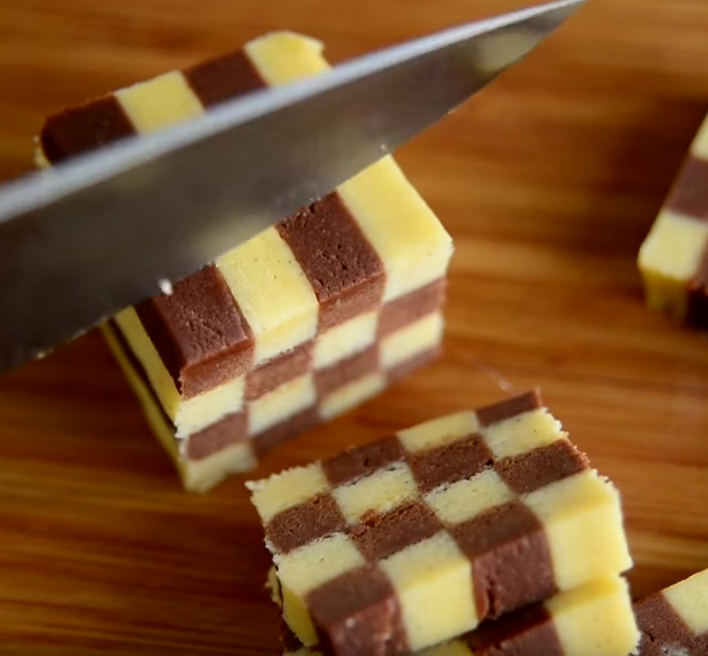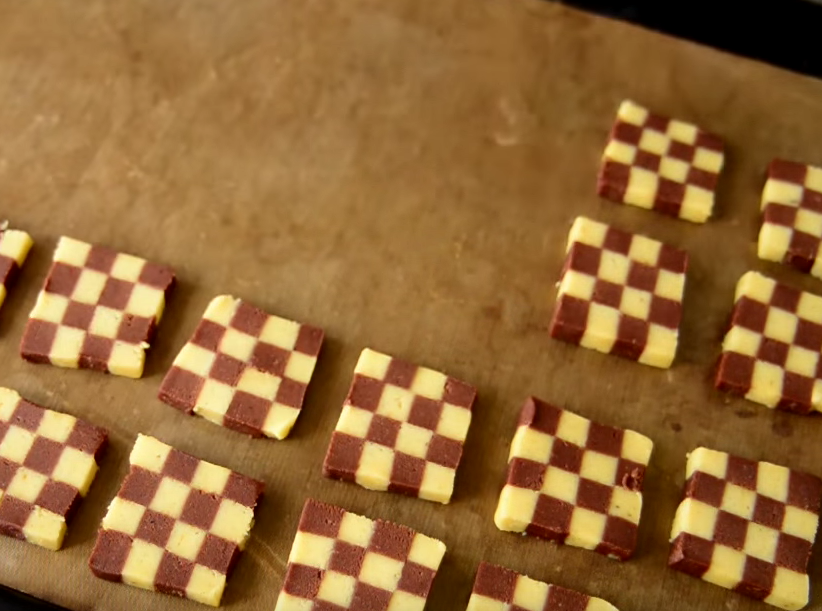 Xəmiri hazırlamaq üçün ilk öncə soyuq kərə yağını bıçaqla xırda hissələrə bölün. Bir qabda un, şəkər tozu və duzu qarışdırın. Xırda doğranmış kərə yağını da quru qarışığa əlavə edib ovun. Mikserin xəmir yoğurma başlığı ilə də hazırlaya bilərsiniz.Unlu, yağlı ovuntuya 1ədəd yumurta sarısı və vanil ekstraktı əlavə edib xəmir yoğururun . Xəmiri iki bərabər hissəyə bölün. Bir hissəsinə kakao əlavə edib yaxşıca qarışdırın. Dəzgahı unlayıb vanilli xəmiri 1 sm qalınlığında yayın. Eyni qaydayla kakaolu xəmiri də yayın. Kənarlarını bərabər şəkildə kəsib düzləşdirin. Daha sonra streç salafana keçirib 1 saatlıq soyuducuya yerləşdirin. Bir qabda yumurtanı tel çırpıcıyla çırpın. Soyuyan xəmirləri ağ və qara şəkildə üst-üstə düzün. Aralarına mətbəx fırçasıyla çırpılmış yumurta yaxaraq yapışdırın. Daha sonra xəmiri iki hissəyə ayırıb kəsin və yumurta yaxaraq bir hissəni digər hissənin üzərinə yerləşdirin. Kənralarını səliqəyə salaraq nazik dilimləyin və hər dilimə yumurta çəkərək üst-üstə düzün, şahmat xanası şəklində alınmalıdır. Hər qata yumurta yaxın. Hazır xəmiri streç salafana büküb yarm saatlıq soyuducuya yerləşdirin. Soyuducudan götürdüyünüz xəmiri 1 sm qalınlığında dilimləyin və yağlı kağız sərilmiş soba sinisinə aralıqlarla düzün. Əvvəlcədən 180 dərəcə qızdırılmış sobada 15 dəqiqə bişirin.