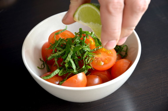 İlk öncə skumbriya balığını təmizləyib yaxşıca yuyun. Üzgəç, baş və quyruq hissəsini kəsib atın. Balığın üzərindən bıçaqla kəsiklər atın və 1 xörək qaşığı bitki yağı səpin. Balığın içərisinə kərə yağı dilimi və 1 budaq rozmarin yerləşdirin. Balığın üstünü iki tərəfli duzlayıb istiot səpin. Tavaya 1 xörək qaşığı yağ töküb qızdırın. Balığı qızğın yağda 3 dəqiqə güclü odda hər iki tərəfini qızardın. Daha sonra ocağı zəiflədib tavanı qapağın örtün və zəif odda 5 dəqiqə bişirin. Bu balıq qızartmasınn yanına pomidor salatını hazırlaya bilərsiniz. Bunun üçün 10 ədəd çerri pomidorunu dilimləyin,üzərinə doğranmış 5 ədəd nanə yarpaqları, laym şirəsi, zeytun yağı və duz əlavə edib qarışdırın. Hazır balıq qızartmasını ətirli salatla süfrəyə verə bilərsiniz.