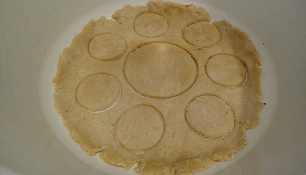 Qazmağı hazırlamaq üçün unu ələyin. Bir qabda ələnmiş unun orta hissəsini əlinizlə açın və duz, ərinmiş kərə yağını tökün. Suyu az-az əlavə edib xəmir yoğurun. Xəmir yağlı və yumşaq alınacaq. Xəmiri yuvarlayıb streç salafana büküb təxminən 40 dəqiqə kənarda saxlayın. Xəmir dincəldikdən sonra oxlovla 2 mm qalınlığında dəzgahın üzərinə yayın. Yaymaq üçün undan istifadə etməyin! Yaydığınız qazmağı qazanın dibinə yayıb stəkanla və ya formayla dairəvi kəsin. Qazanı ocağa qoyub qazmağı az bişirin.
