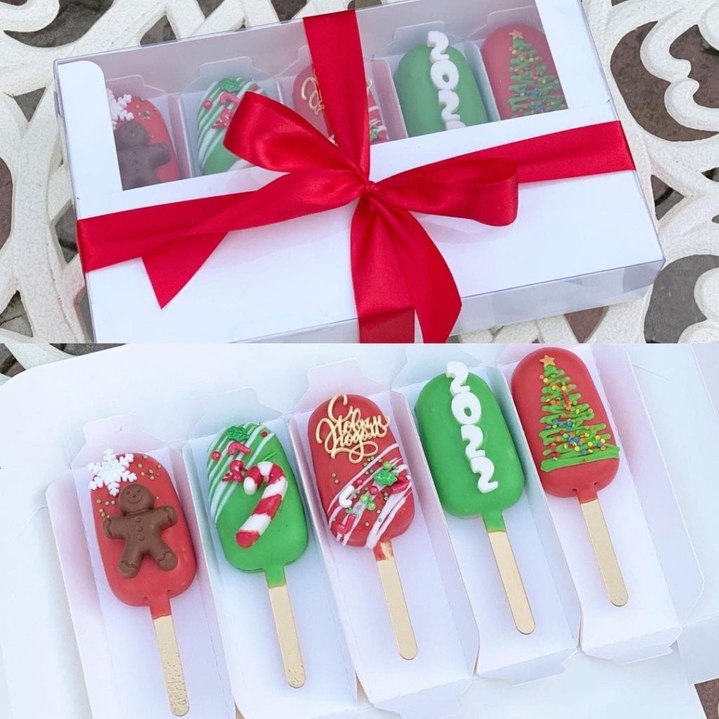 Bu dekorlardan hər hansı biri bayram atributlarıyla tamamlana bilər. Məsələn, mastikadan hazırlanan hədiyyə qutuları, şokolad topları və ya qar dənələri və digər dekorativ elementlər əlavə edə bilərsiniz.